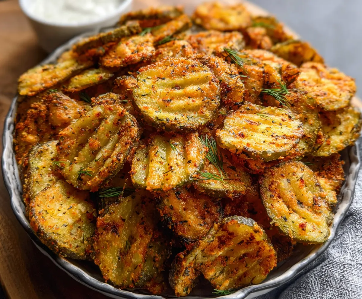 Serve immediately with your favorite dipping sauce, like ranch or a creamy dill sauce. Enjoy your crunchy, spicy dill pickle chips with that perfect blend of flavors!