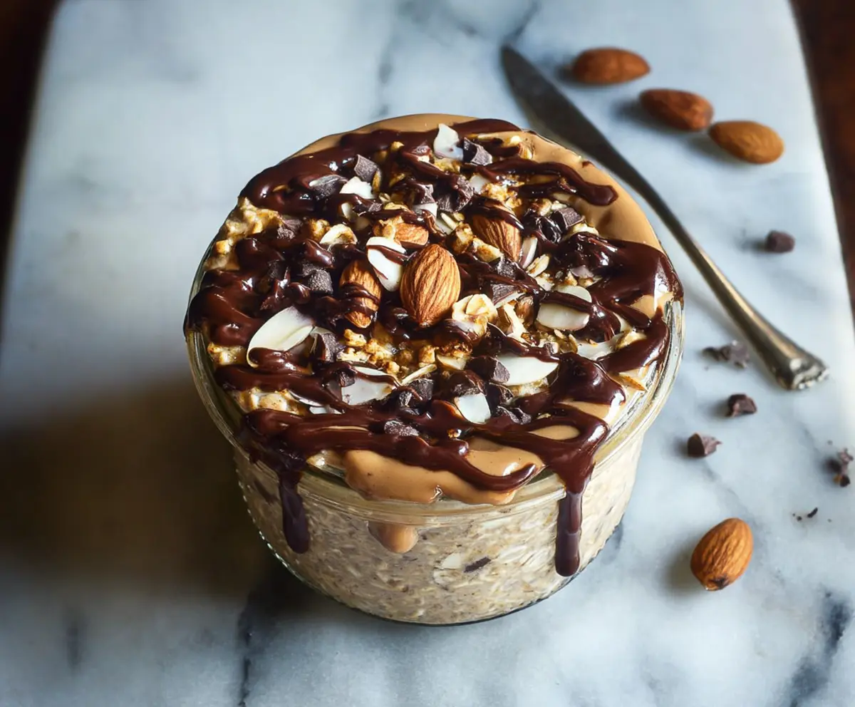 For an extra sweet touch, drizzle some dark chocolate sauce or melted dark chocolate on top before serving. This makes your overnight oats not only delicious but also visually appealing!