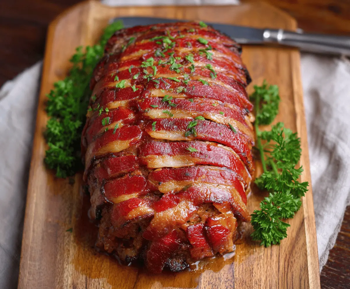 This delightful meatloaf is packed with flavor and has that crispy, smoky bacon exterior that everyone loves. Happy cooking!
