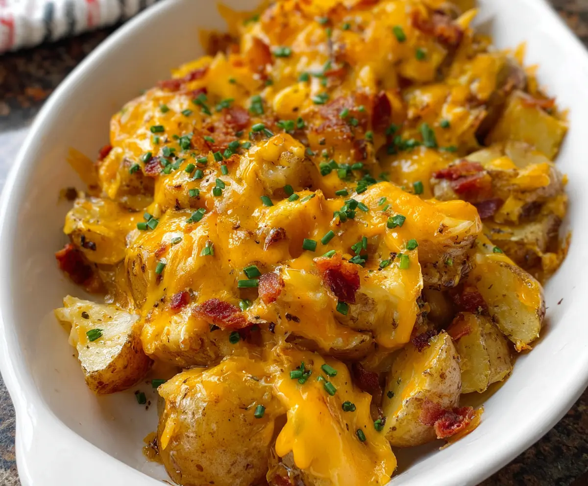 Baked Cheddar Ranch Potatoes are a super tasty side dish! They are golden and crispy on the outside, soft inside, and packed with cheesy goodness and ranch flavor.