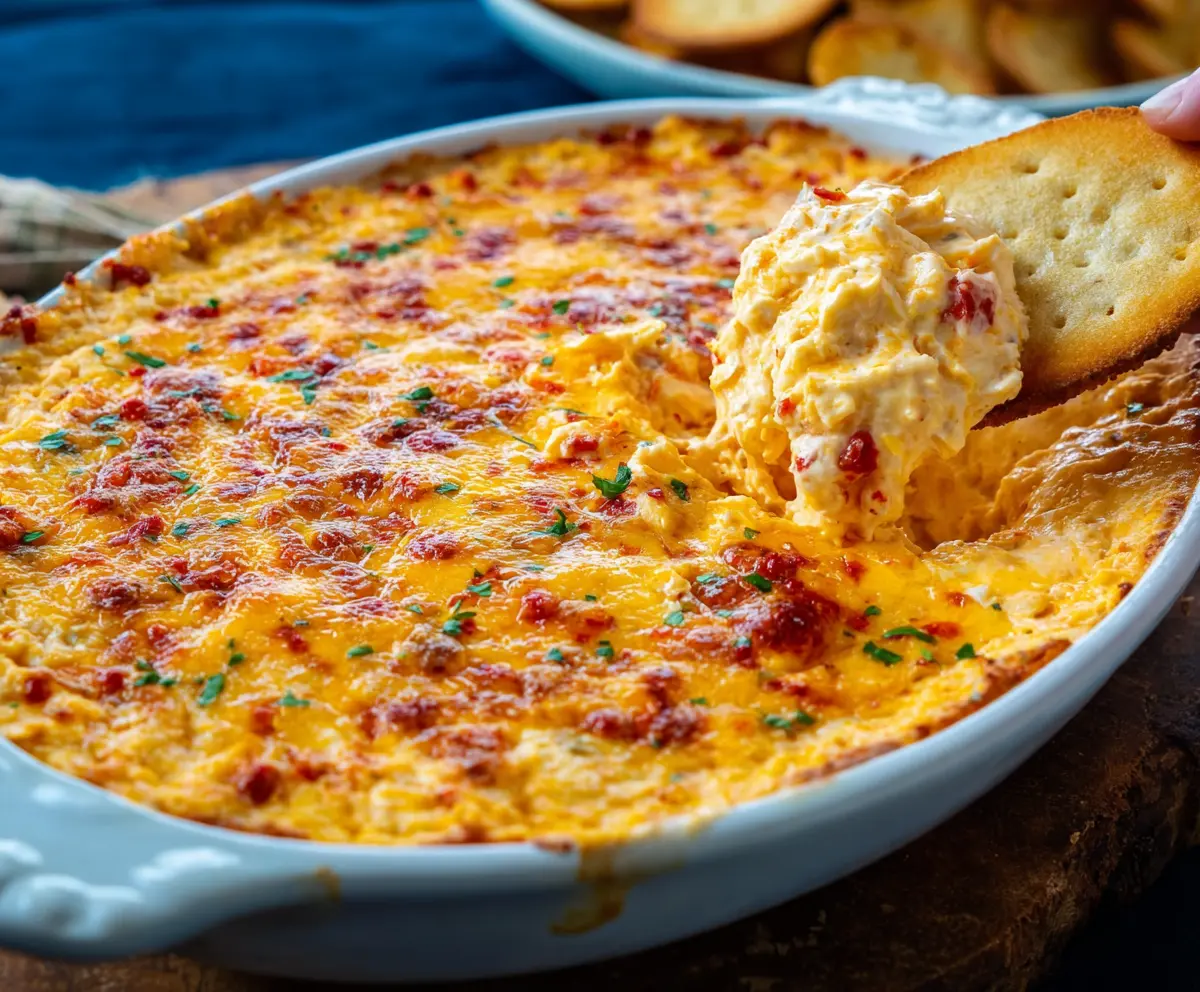 Now, it’s time to dig in! Serve your warm, cheesy baked pimento cheese dip with toasted baguette slices, crackers, or fresh veggies for dipping. Share it with friends or keep it all to yourself—it’s that good!