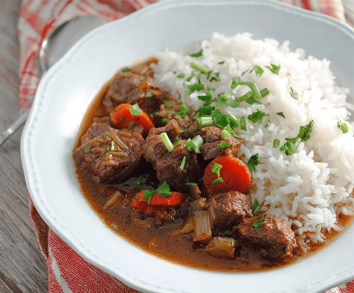 This hearty beef stew with rice is perfect for cozy dinners. Tender beef, colorful veggies, and flavorful broth come together to warm your soul.