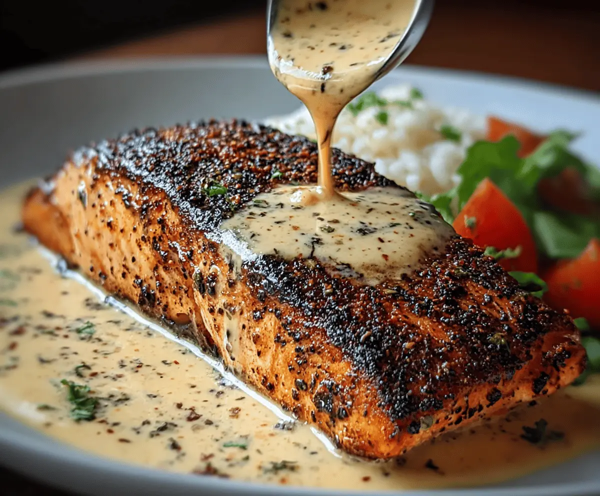 Enjoy your delightful Blackened Salmon with Creamy Dijon Sauce!