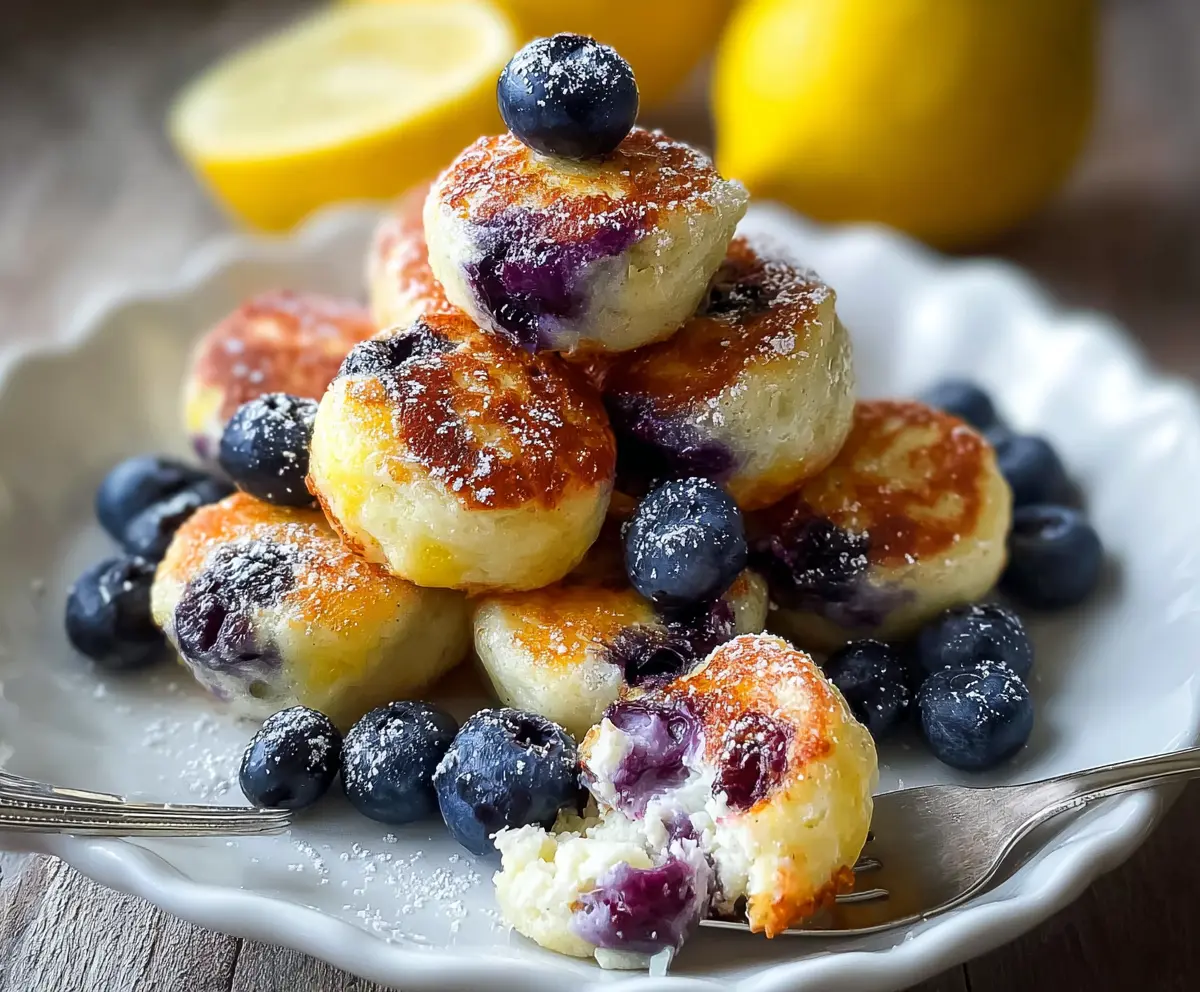 Blueberry Lemon Cottage Cheese Pancake Bites