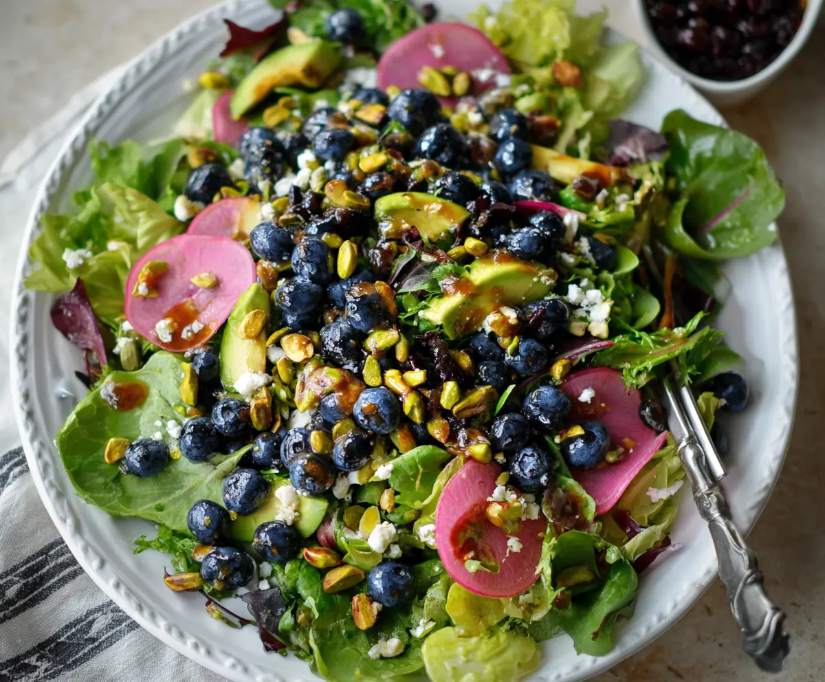 This refreshing Blueberry Pistachio Spring Salad is a colorful mix of juicy blueberries, crunchy pistachios, and fresh greens. It’s perfect for a light meal or a fun side dish!