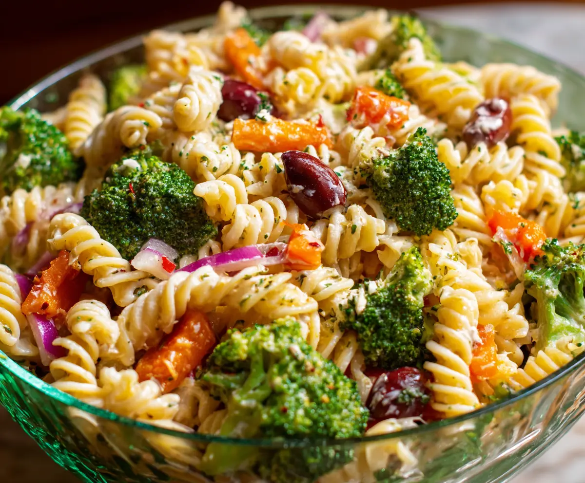 The key to a refreshingly good pasta salad is chilling! Start by cooking your pasta until just al dente, then add broccoli for the last two minutes—it keeps both ingredients vibrant and bright.