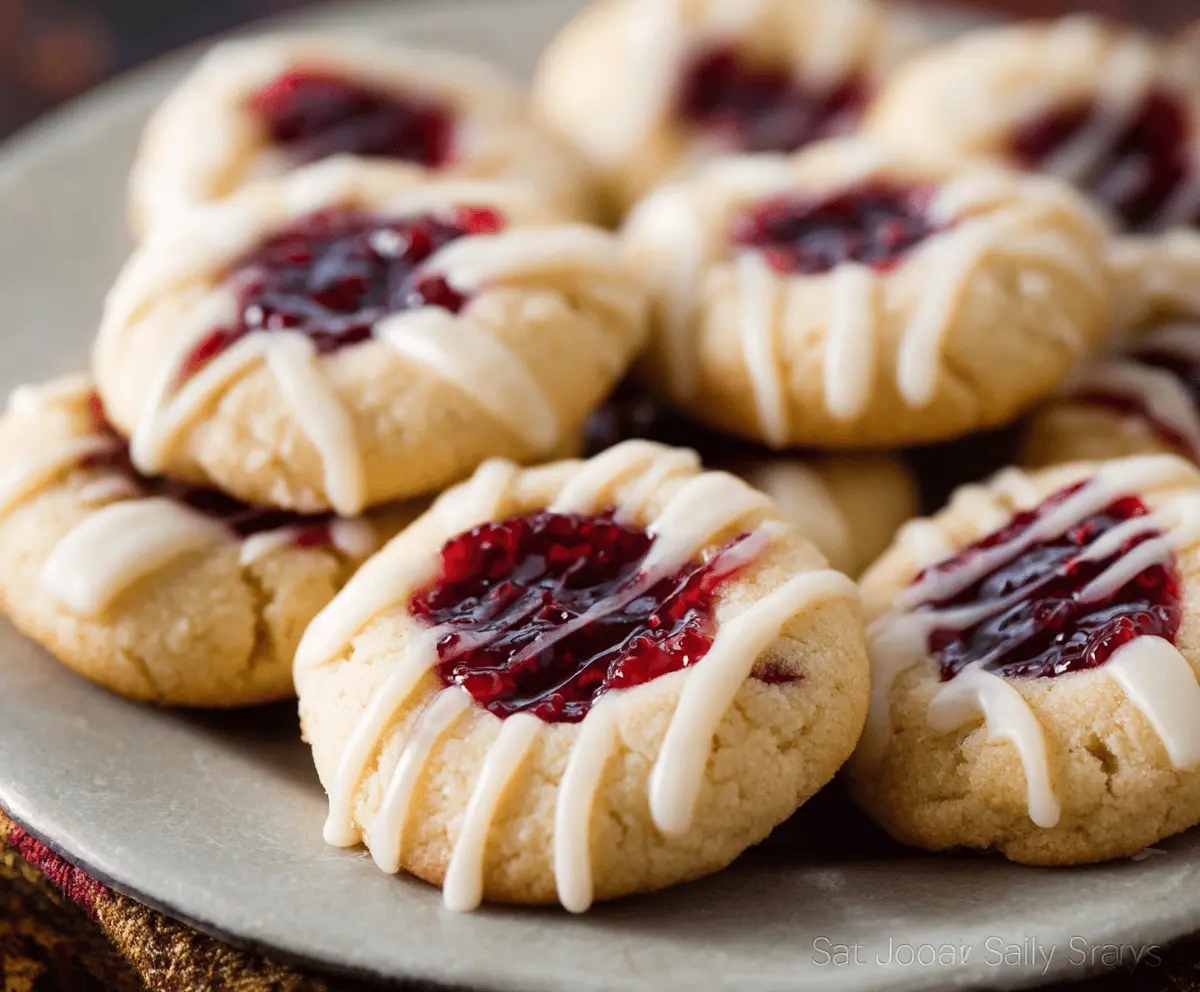 Buttery Raspberry Jam Thumbprint Cookies With Almond Glaze