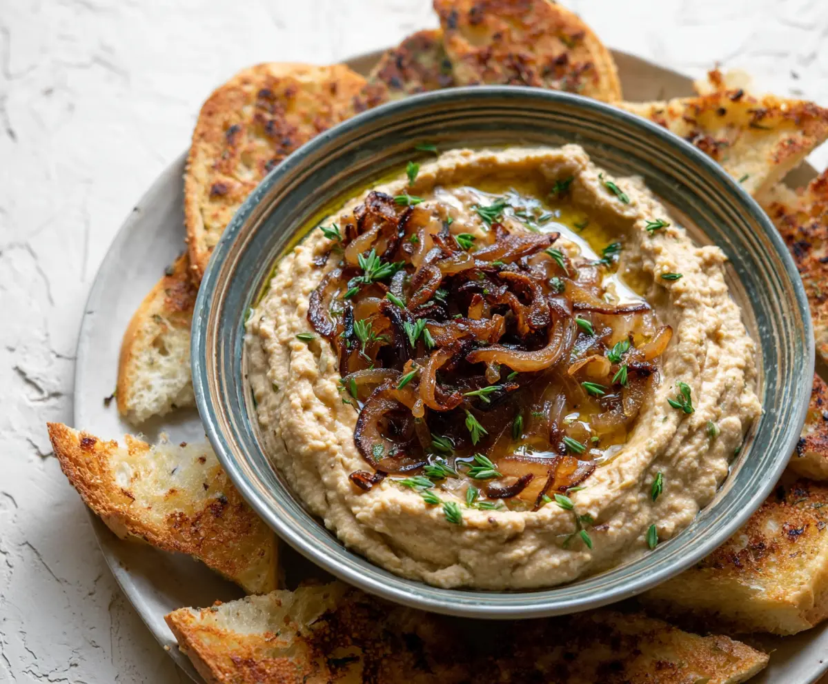 Serve your delicious dip with toasted baguette slices or crostini for dipping. Enjoy the creamy, savory goodness of the white bean dip alongside the sweet richness of the caramelized onions—it’s a treat for everyone!