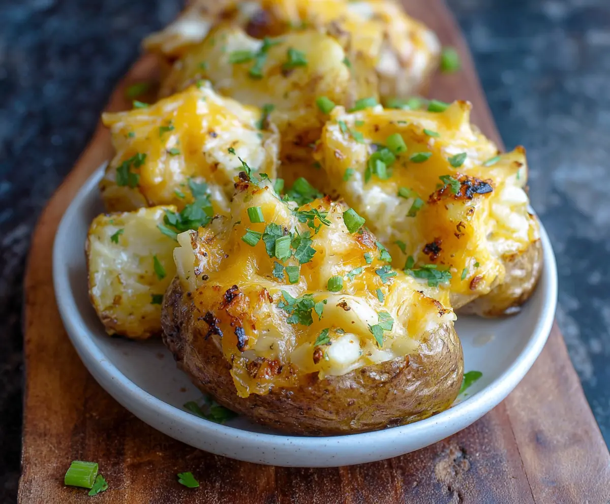 Once they’re done, take them out, and sprinkle the remaining bacon, chopped green onions, and some fresh parsley or chives on top. This adds a nice touch of color and flavor!