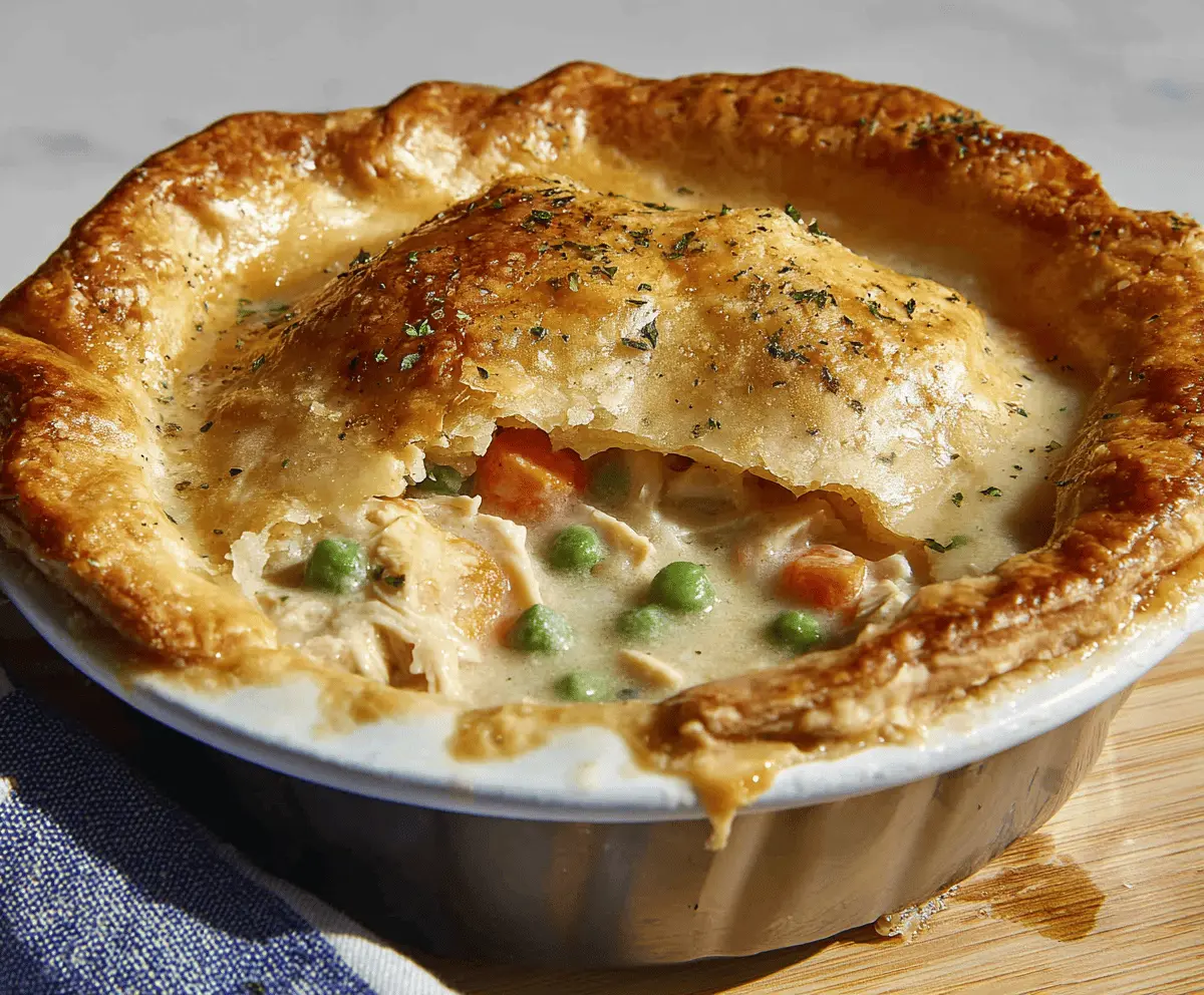 Chicken Pot Pie is a cozy dish filled with tender chicken, warm veggies, and creamy sauce, all tucked inside a flaky crust. It’s the ultimate comfort food for chilly days!