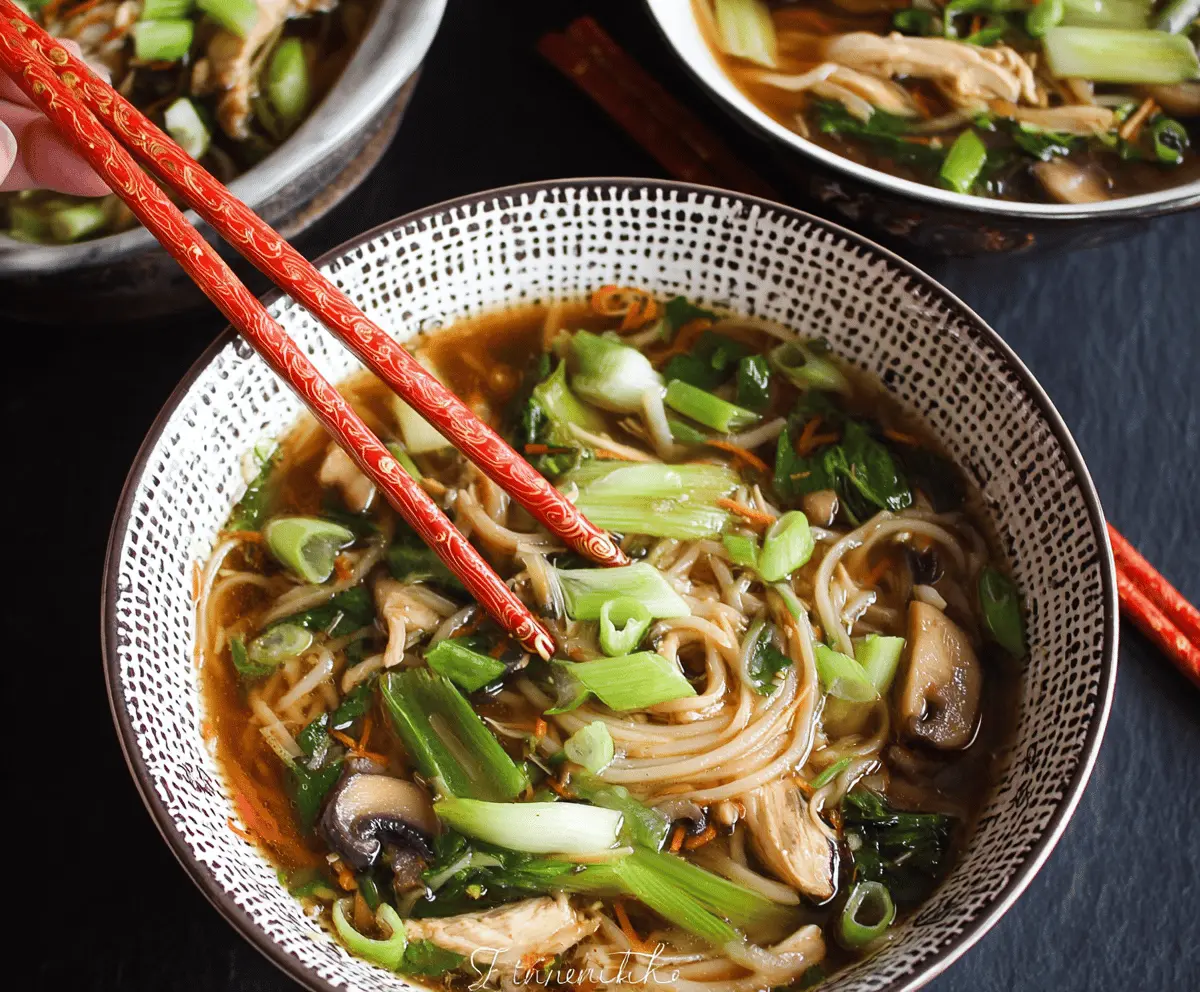 Serve immediately with chopsticks and a soup spoon! Enjoy the warm, comforting flavors of your homemade Chinese Chicken Noodle Soup!