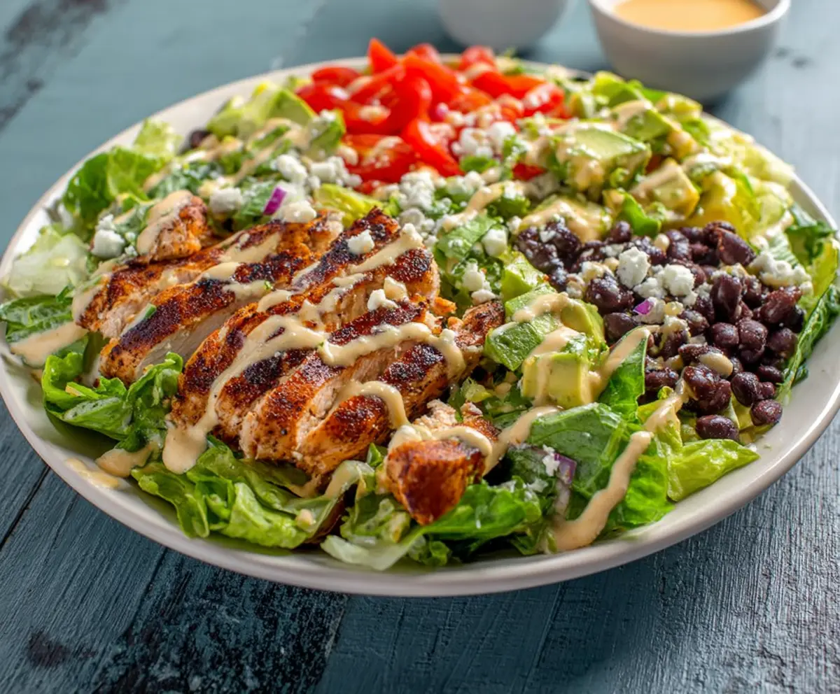 This Chipotle Lime Chicken Salad is a bright and zesty dish! Juicy chicken is marinated in chipotle and lime, giving it a kick. It’s topped with fresh veggies, making it colorful and crunchy.