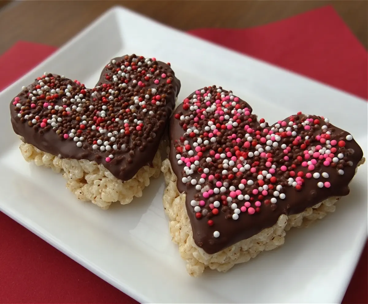 These Chocolate Dipped Heart Rice Krispies are sweet treats shaped like hearts, covered in rich, delicious chocolate. Perfect for sharing with loved ones!