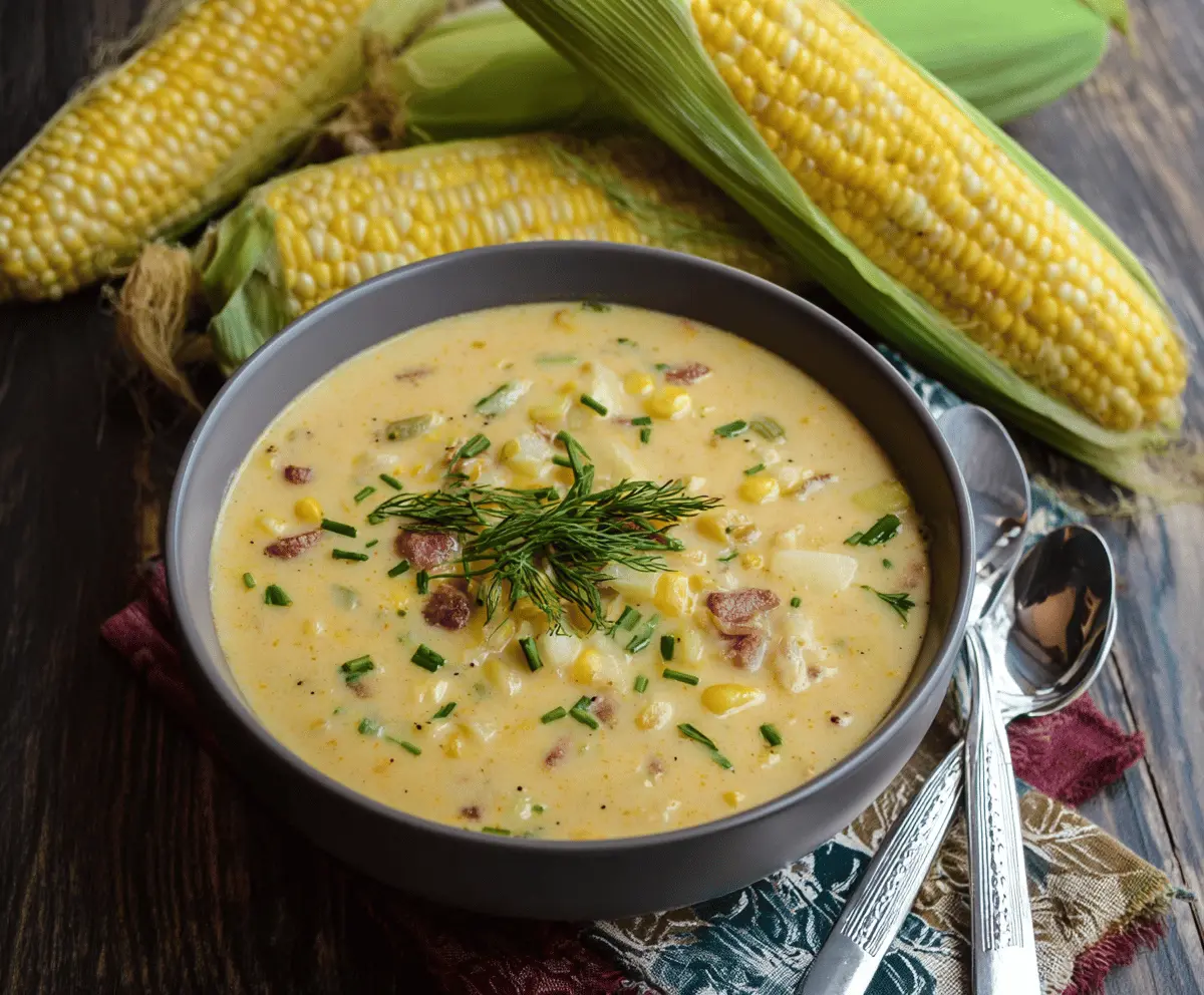 Enjoy this creamy and hearty corn chowder—perfect for warming up on a chilly day!