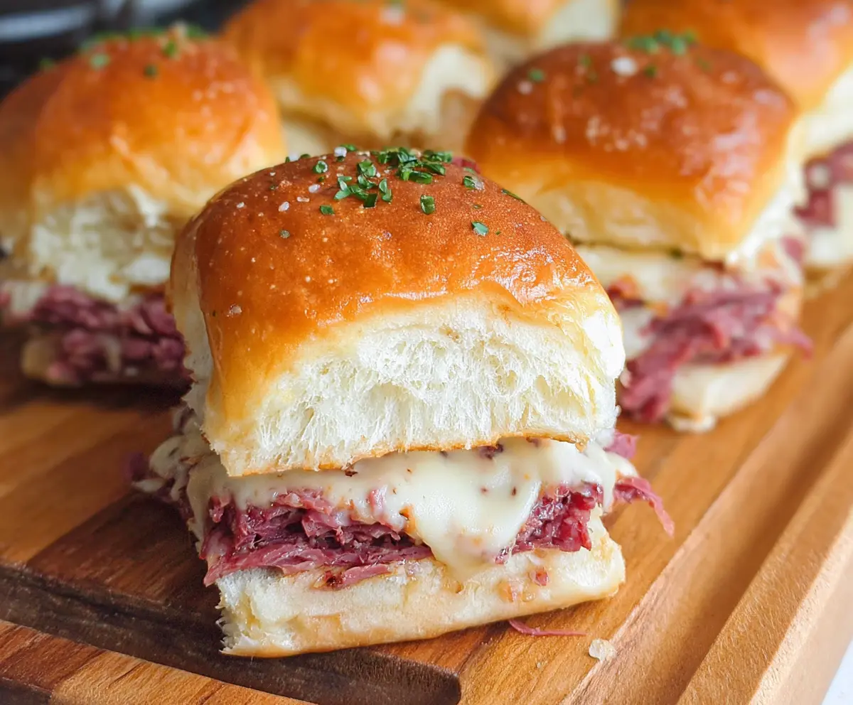 These corned beef sliders are mini sandwiches packed with delicious flavor! With tender corned beef, melted cheese, and a soft bun, they are super easy to make and taste amazing.