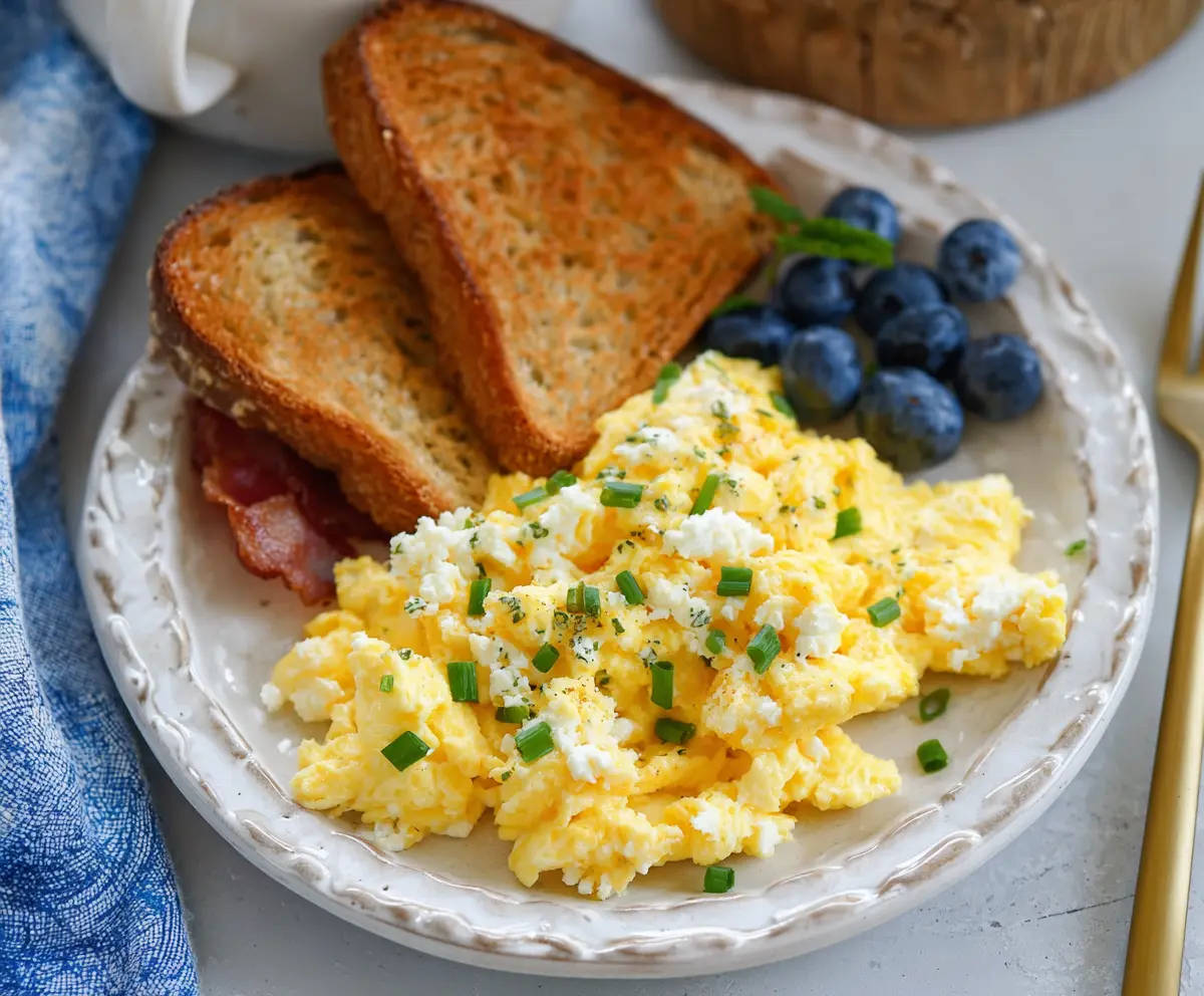 Getting perfectly creamy scrambled eggs can be tricky, but here’s how to do it: