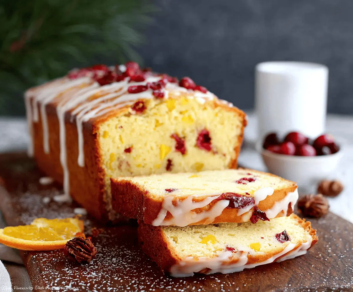 After the cake has cooled completely, drizzle the orange glaze generously over the top. Garnish with a few fresh cranberries for a festive touch!