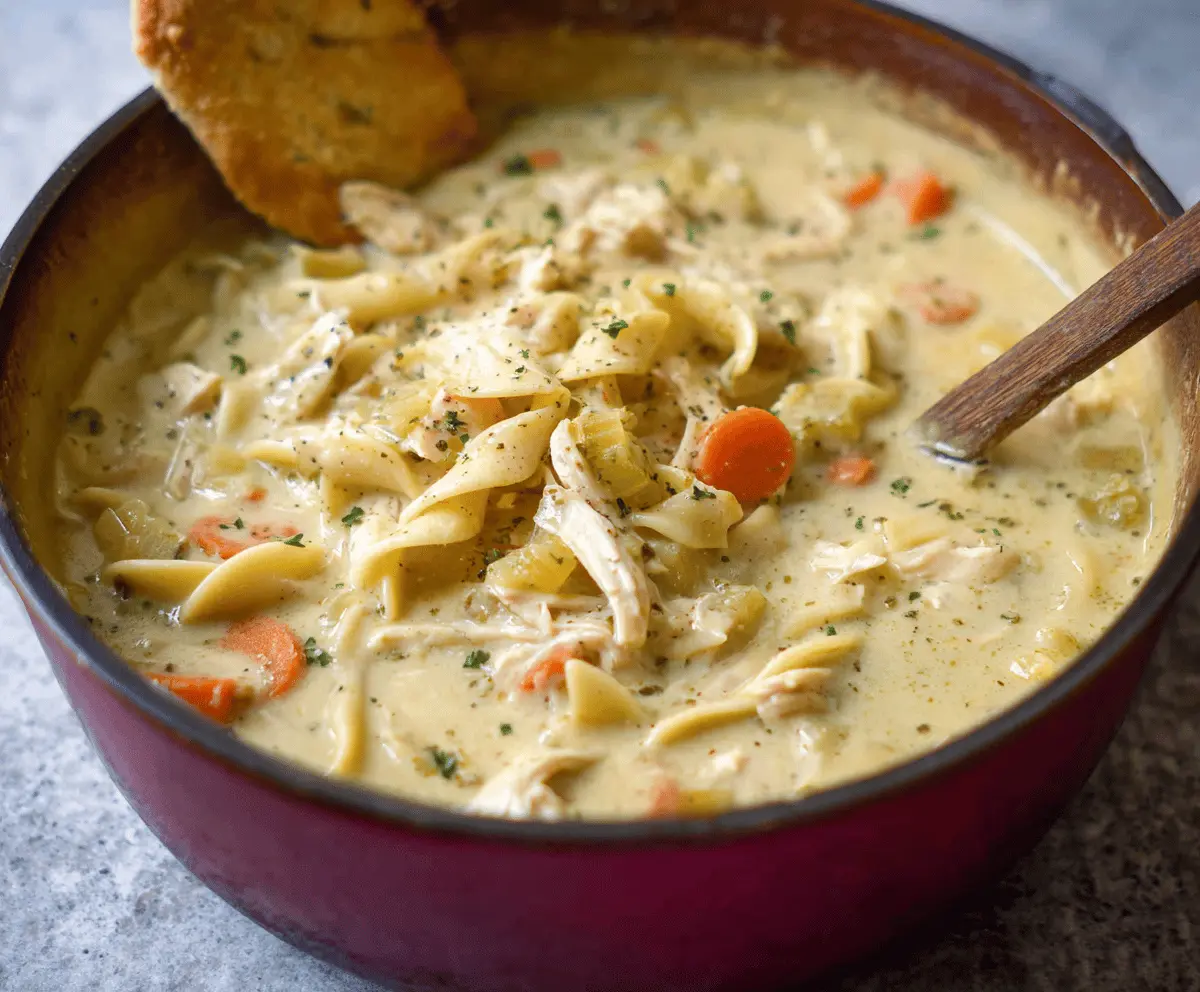 This creamy chicken noodle soup is like a warm hug on a cold day! Packed with tender chicken, hearty noodles, and a rich, smooth broth, it’s pure comfort in a bowl.