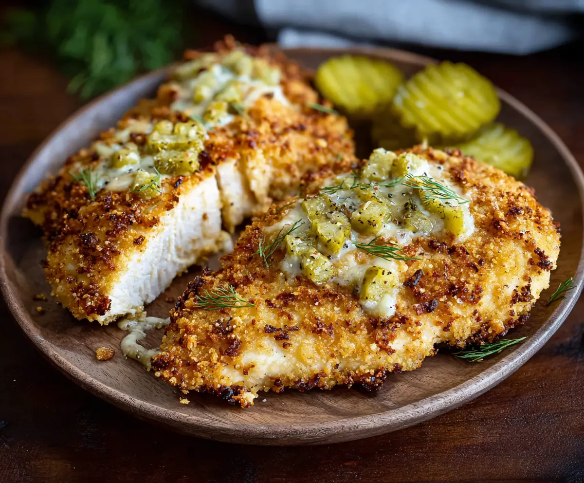 Enjoy your crispy, tangy, and flavorful Dill Pickle Parmesan Chicken!