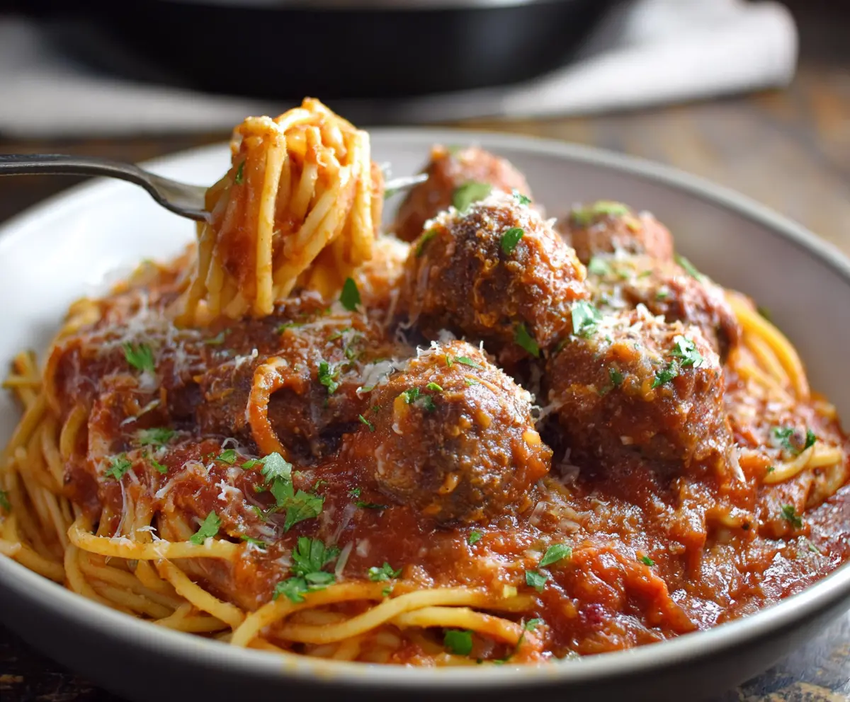 Enjoy your hearty, hands-off meal of Crockpot Spaghetti and Meatballs—perfect for busy weeknights and guaranteed to be a crowd pleaser!