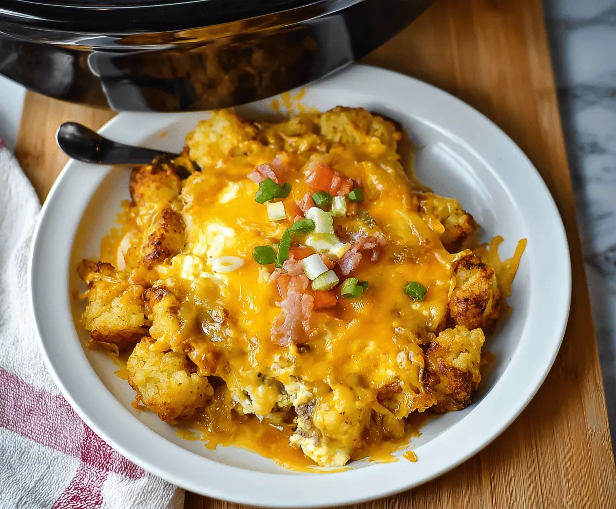 This hearty Crockpot Tater Tot Breakfast Casserole is a morning dream! With layers of tater tots, eggs, cheese, and your favorite breakfast meats, it’s filling and super easy to make.