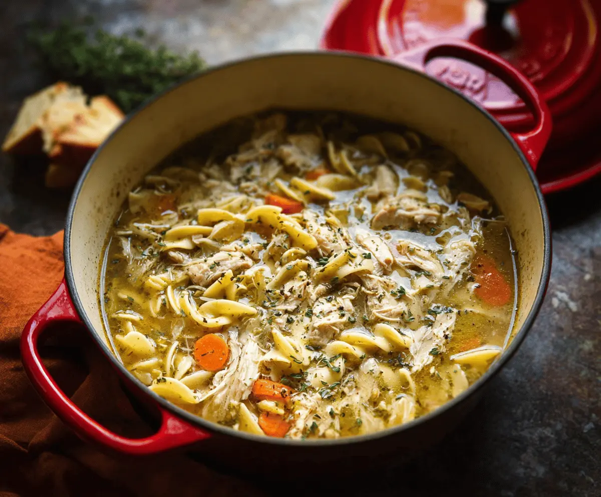 This Dutch Oven Chicken Noodle Soup is warm, cozy, and perfect for chilly days. With tender chicken, fresh veggies, and hearty noodles, it’s like a hug in a bowl!