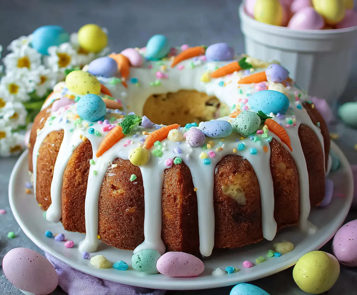 This Easter Bundt Cake is a beautiful treat that brings cheer to your holiday table. It’s soft, moist, and often decorated with colorful glaze or sprinkles!