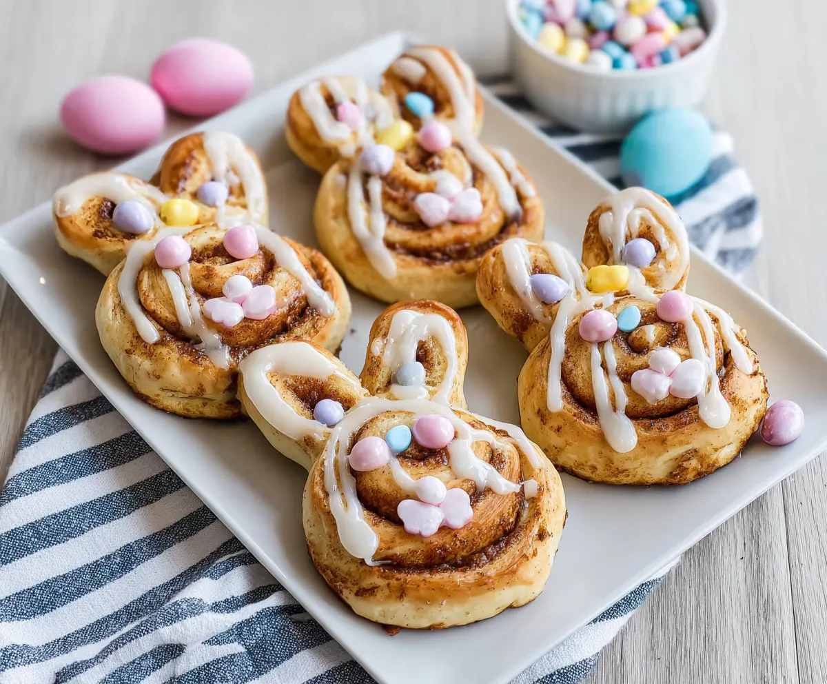 Enjoy making and sharing these festive Easter Bunny Cinnamon Rolls!