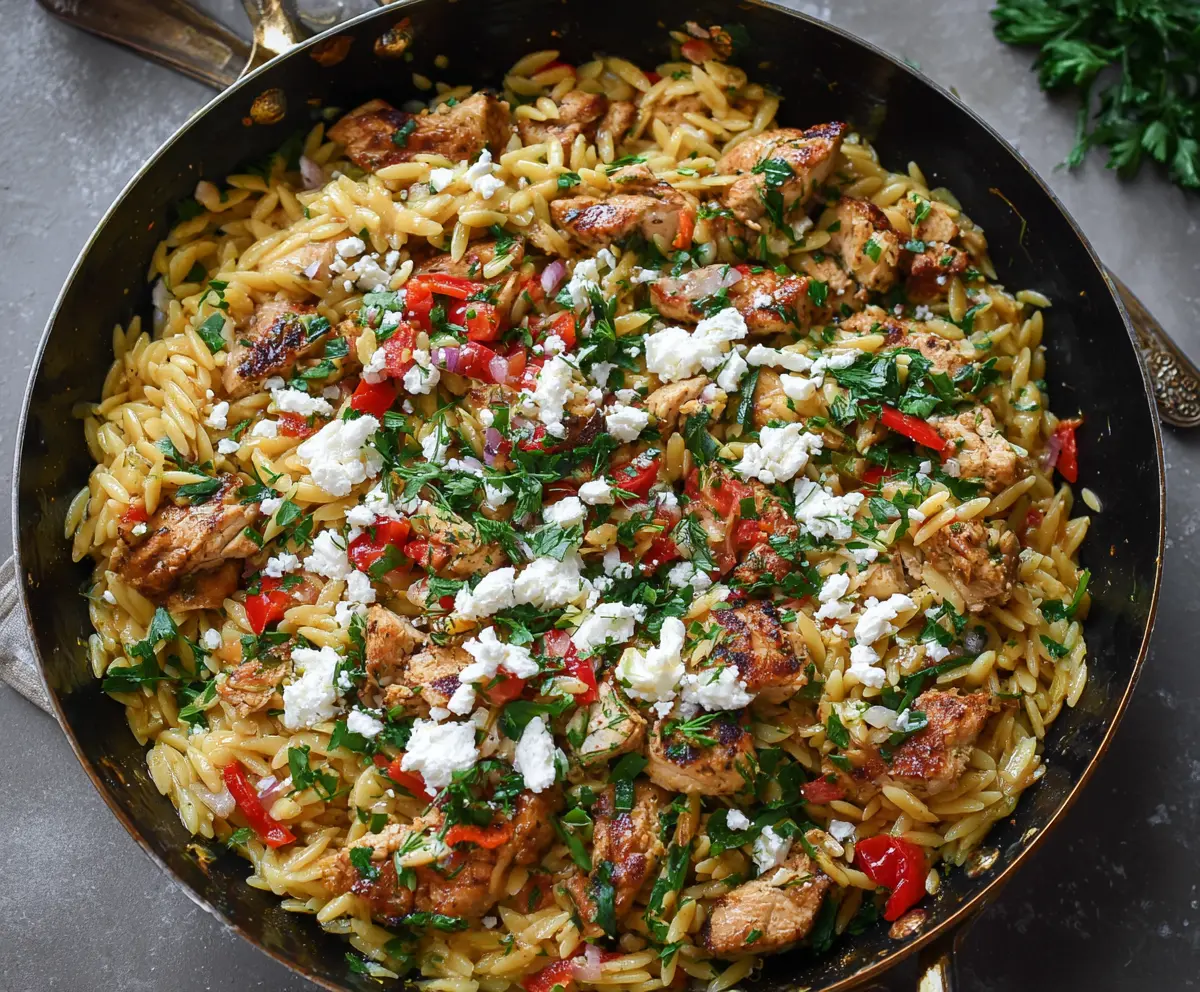 This Feta Orzo with Chicken is a tasty mix of tender chicken, creamy feta cheese, and fluffy orzo pasta. It’s easy to prepare and hits the spot for a satisfying meal!