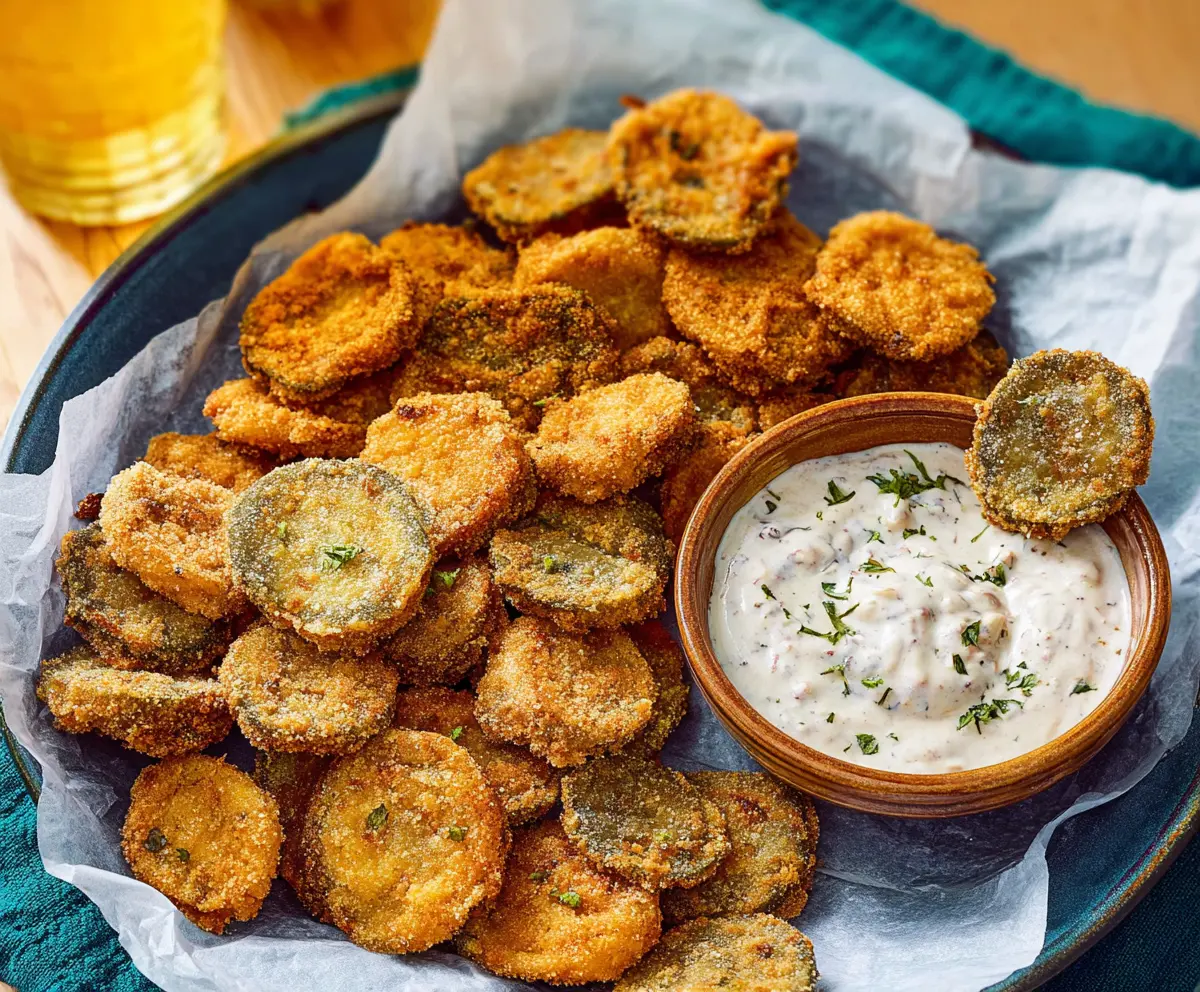 Serve the fried pickles hot alongside the delicious dipping sauce. Enjoy this crunchy, tangy snack that’s perfect for sharing with friends and family!
