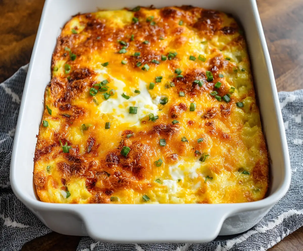 Pour the entire mixture into your prepared baking dish, spreading it out evenly. Pop it into your preheated oven and bake for 30-35 minutes. You’ll know it’s ready when the eggs are set and the top is a lovely golden brown. Yum!
