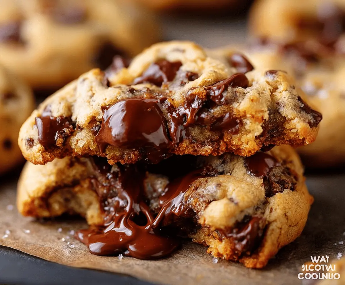 This recipe yields deliciously soft, chewy, and gooey cookies full of melted chocolate chips, just like in the image. Happy baking! 🍪