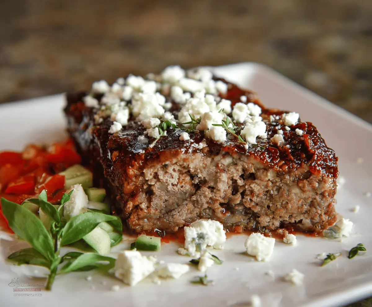 Once done, take the meatloaf out of the oven and let it rest for about 10 minutes. This resting time keeps it juicy when you slice it. Before serving, sprinkle some additional crumbled feta and fresh herbs on top for extra flair.