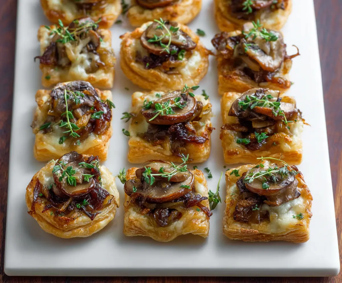 Absolutely! You can caramelize the onions and sauté the mushrooms ahead of time and store them in an airtight container in the fridge for up to 2 days. Just reheat them slightly before topping your pastry squares for a quick assembly.