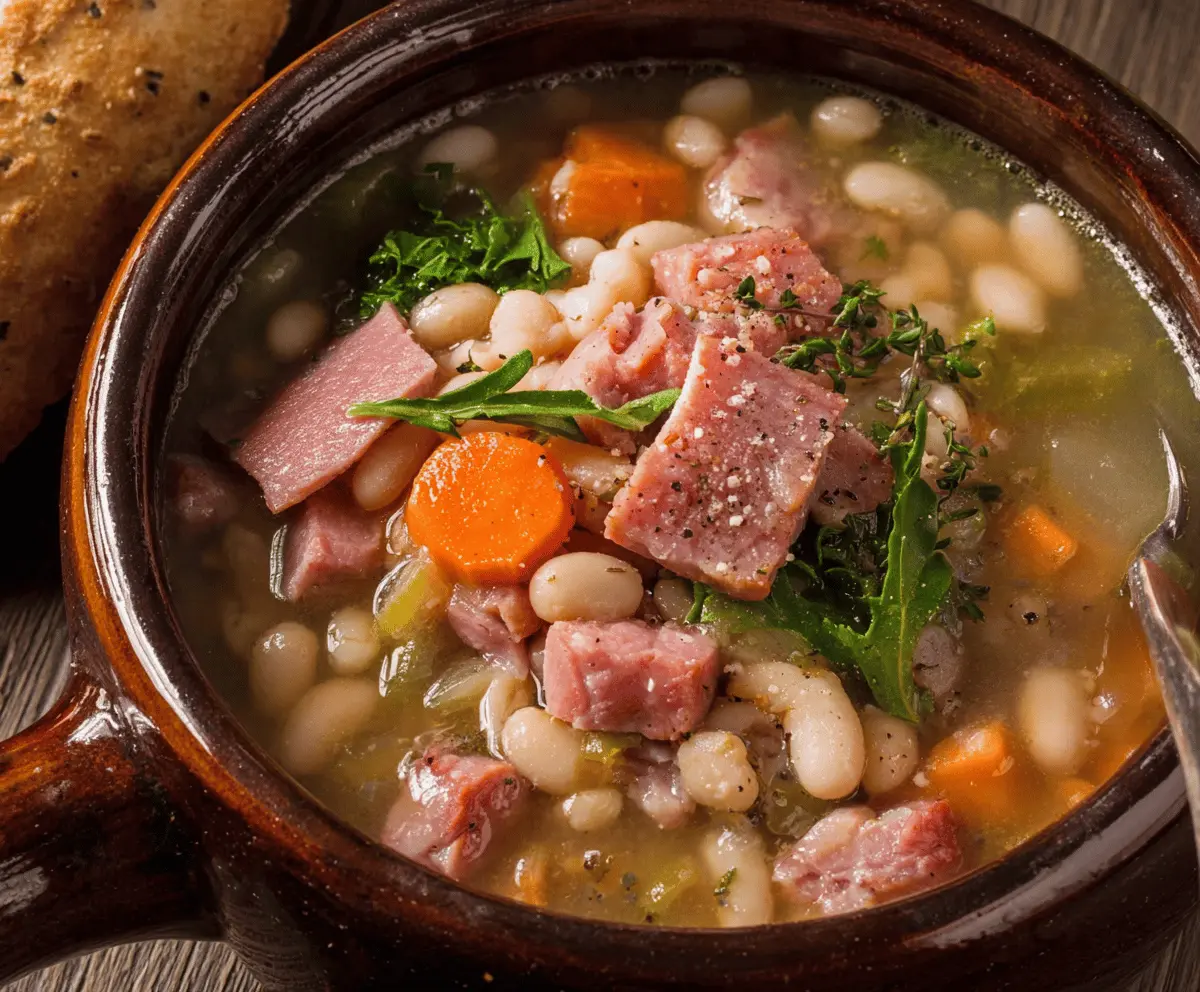 Ham and Bean Soup is a cozy dish that’s perfect for chilly days. It’s packed with hearty chunks of ham, tasty beans, and fresh veggies simmered to perfection!