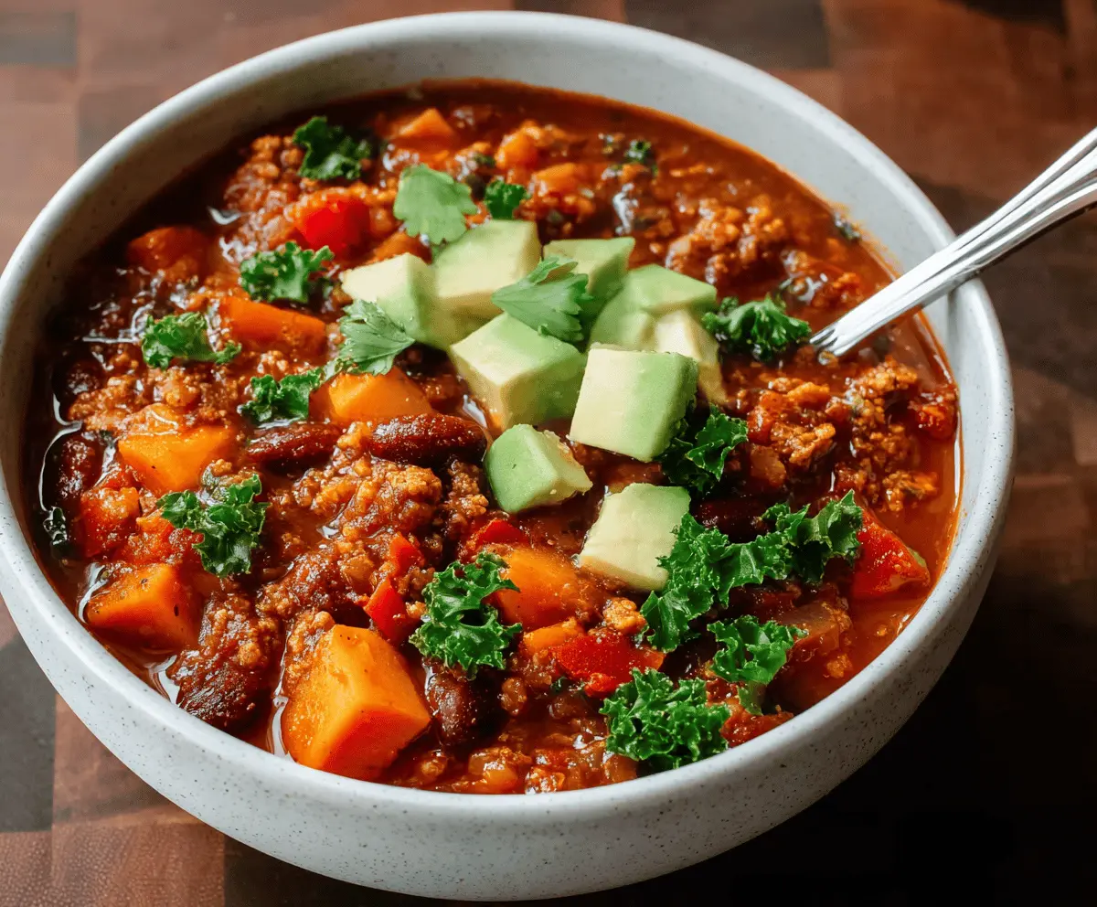 This delicious chili is loaded with nutrients and is perfect for a cozy dinner. It’s high in protein and fiber, thanks to the beans and sweet potatoes, making it both satisfying and healthy. Enjoy every bite!