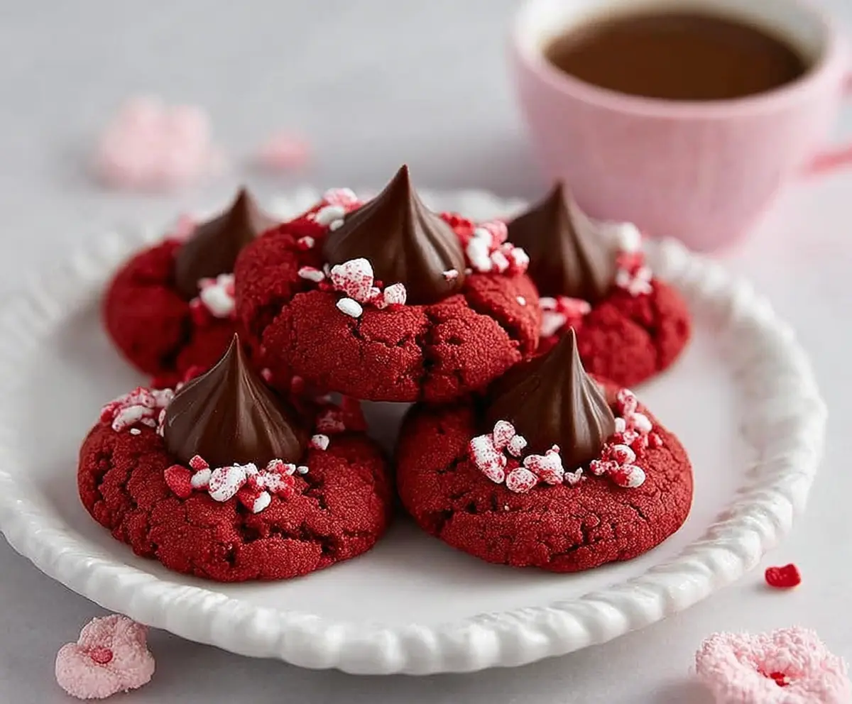 These cookies are soft, rich, and packed with classic red velvet flavor, topped with a chocolate kiss, making them both delightful and festive. Enjoy baking and sharing!