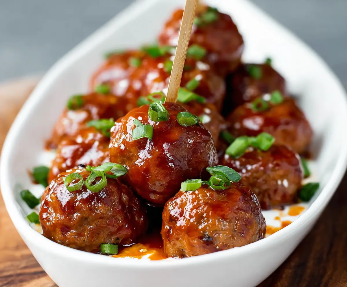 Transfer the sauced meatballs to a serving dish. This is where you can sprinkle some extra chopped green onions on top and, if you like, a dash more of crushed red pepper flakes for an extra kick.