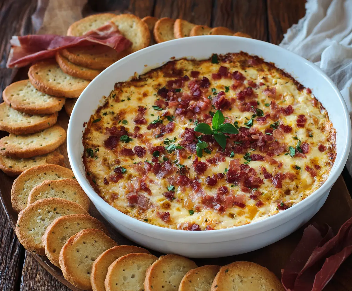 This creamy Hot Smoked Gouda Bacon Dip brings together the smoky goodness of gouda cheese and crispy bacon. It’s perfect for parties or cozy nights in!