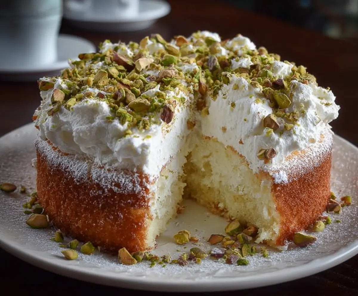 This Lemon Pistachio Ricotta Cloud Cake is light and fluffy, with a lovely lemony zing and little crunchy bits from the pistachios. It’s like a gentle hug for your taste buds!