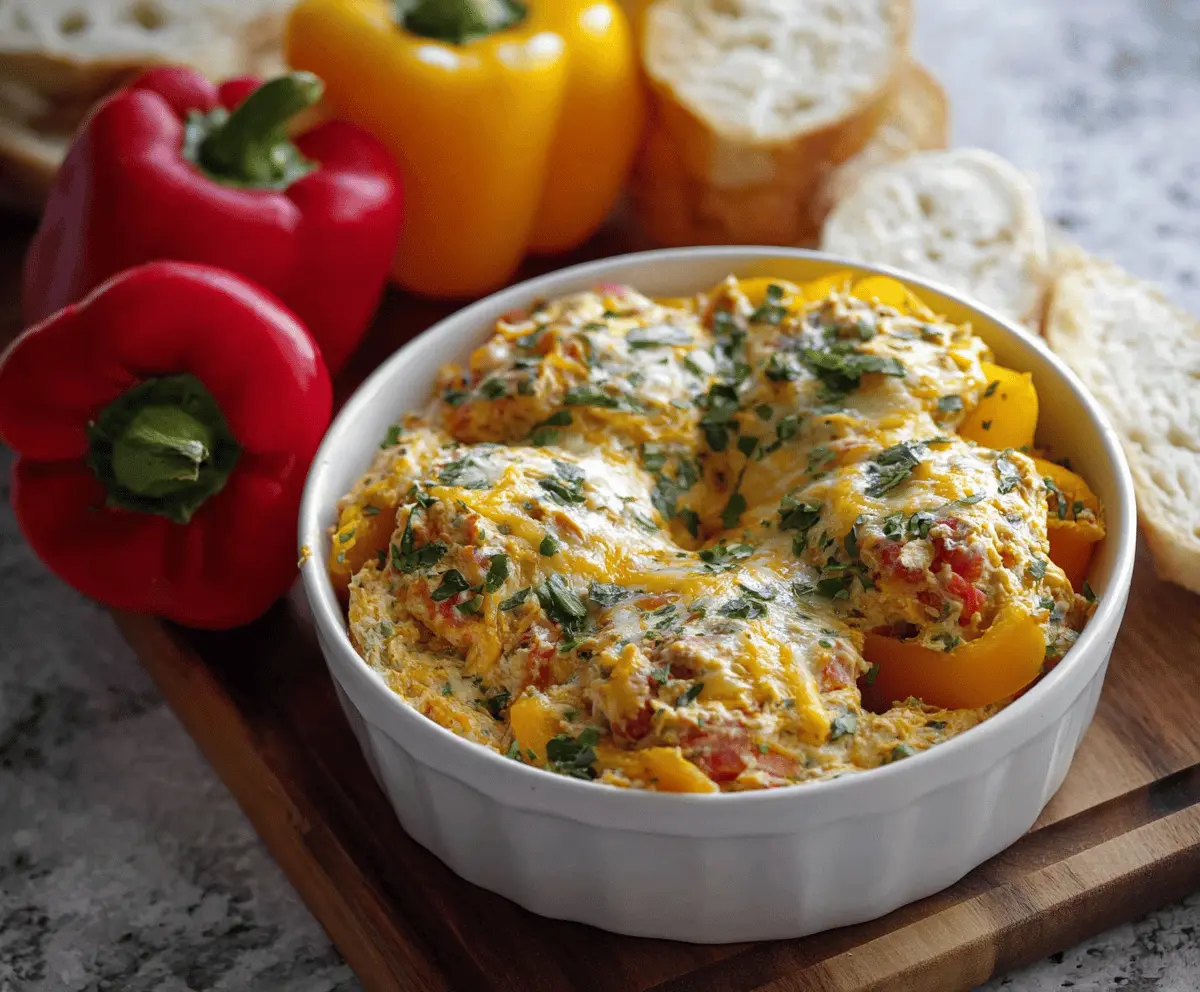 Serve your Loaded Bell Pepper Dip warm with slices of baguette, crackers, or fresh veggies. It’s a perfect party hit or a delightful snack for any occasion!