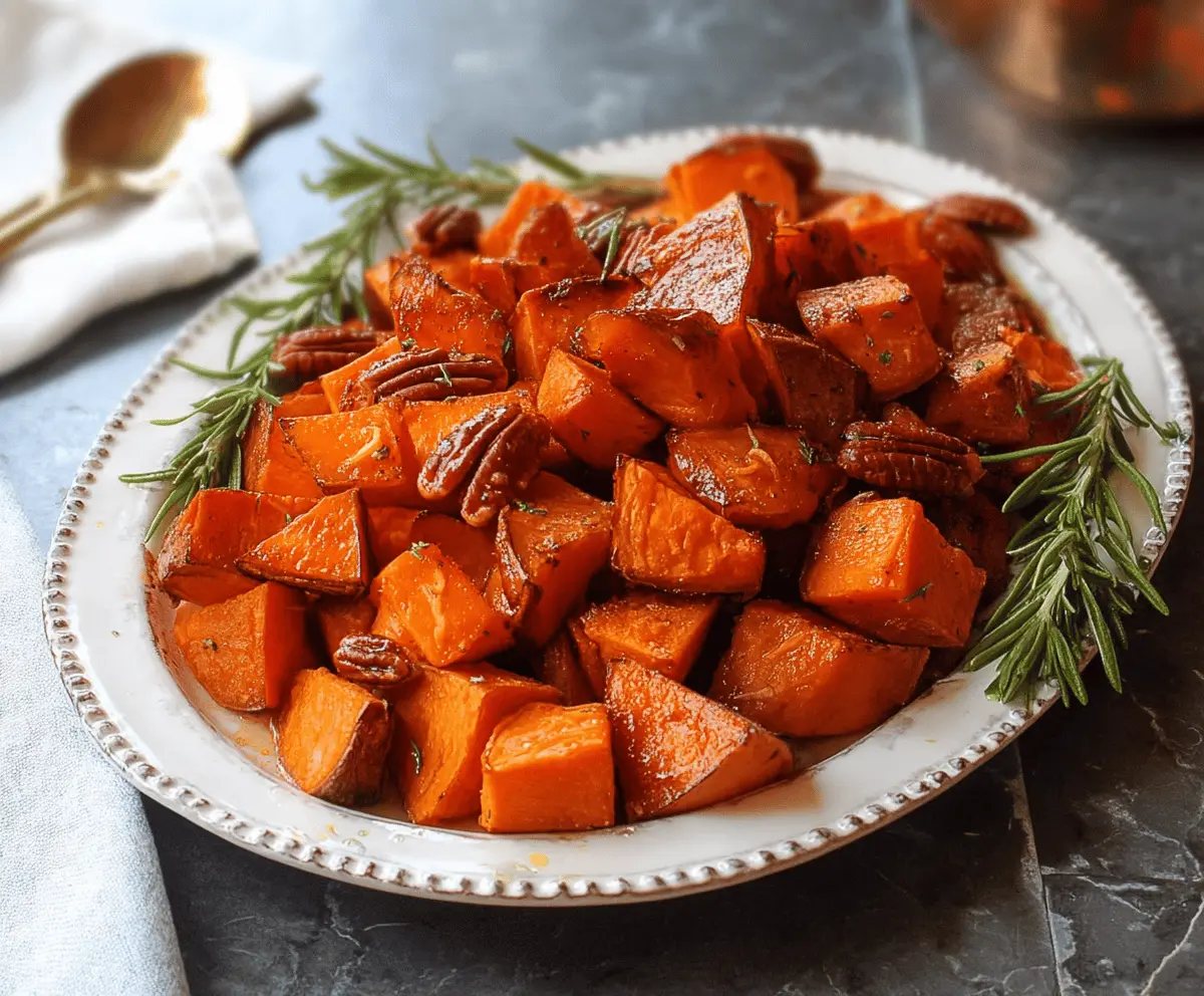 Once you pull them from the oven, transfer the roasted sweet potatoes to a serving platter. For a nice touch, garnish with fresh rosemary or thyme sprigs. These herbs not only decorate but also add a delightful aroma!