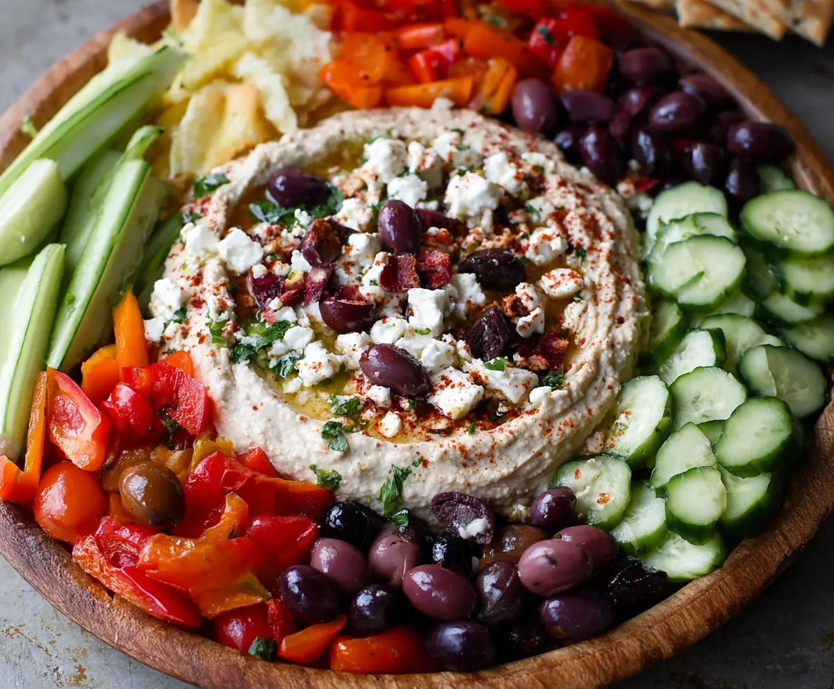 This Mediterranean Hummus Dip Platter is a colorful feast! With smooth hummus, fresh veggies, and crispy pita chips, it’s a great way to snack healthy and share with friends.
