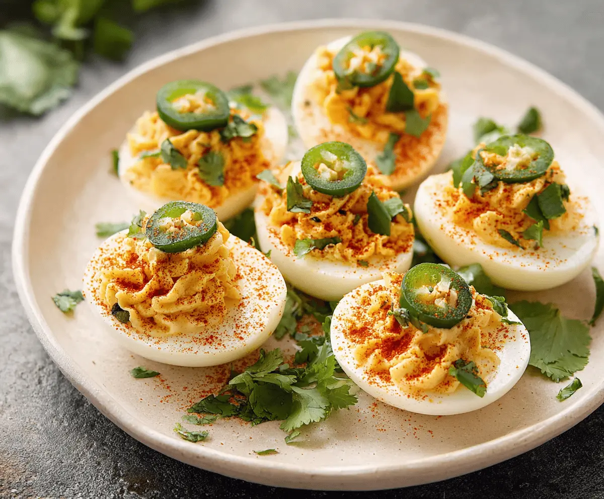 Mexican Deviled Eggs are a fun twist on the classic snack! They have creamy yolks mixed with tangy salsa, zesty lime, and a sprinkle of spices that make them super tasty.