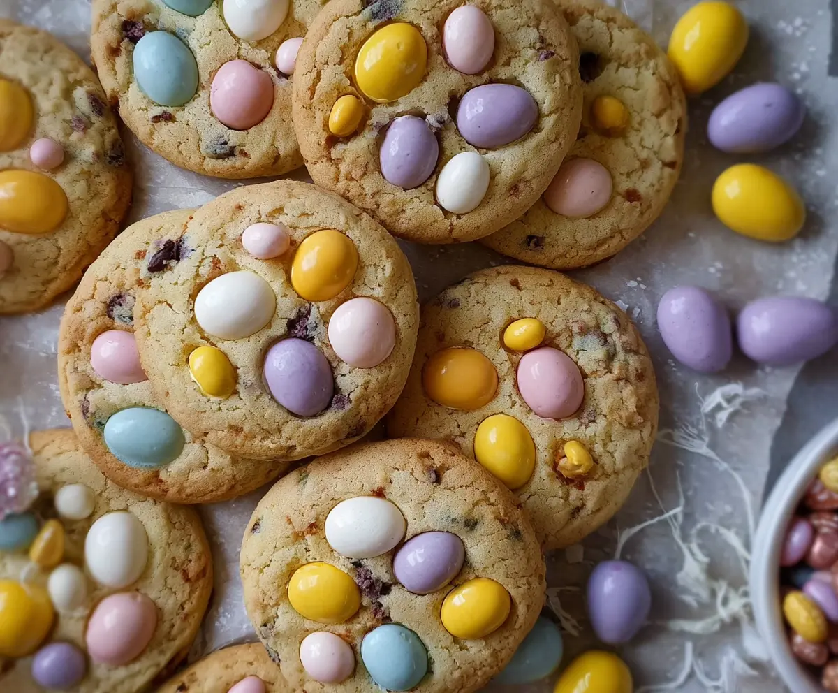 These Mini Egg Cookies are a fun and sweet treat made with crunchy mini chocolate eggs. They are soft in the middle and just enough crispy on the edges to make anyone smile!