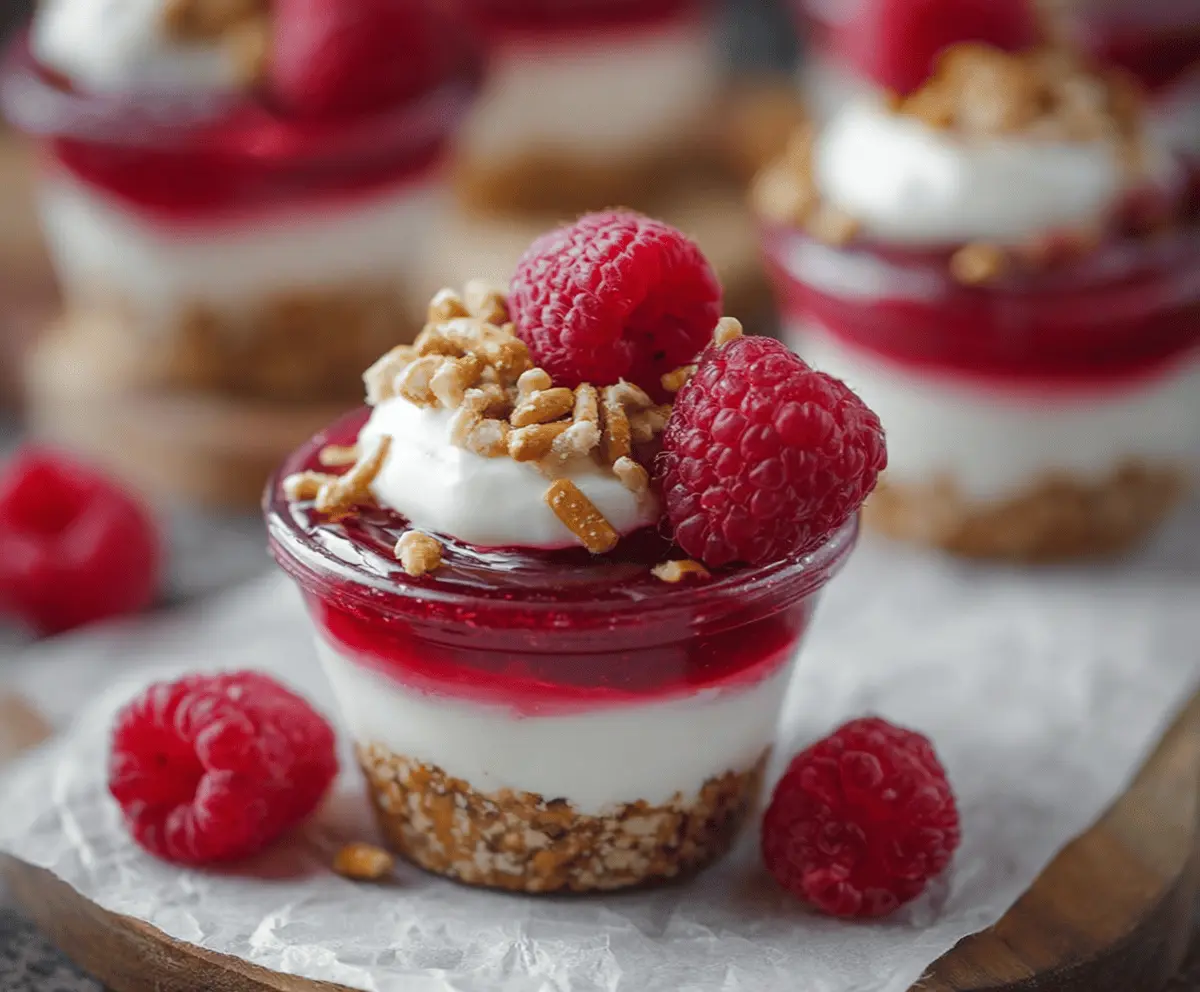 These No-Bake Raspberry Pretzel Cups are a fun and tasty treat! With a crunchy pretzel base, creamy filling, and sweet-tart raspberry topping, they are sure to impress everyone.