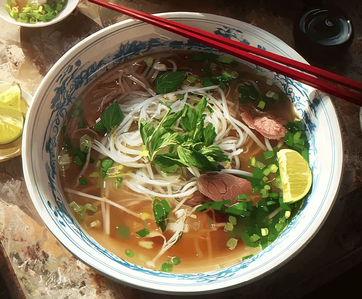 Pho is a warm and aromatic Vietnamese soup filled with tasty broth, fresh herbs, and rice noodles. You can enjoy it with sliced meat or a mix of veggies for extra flavor!