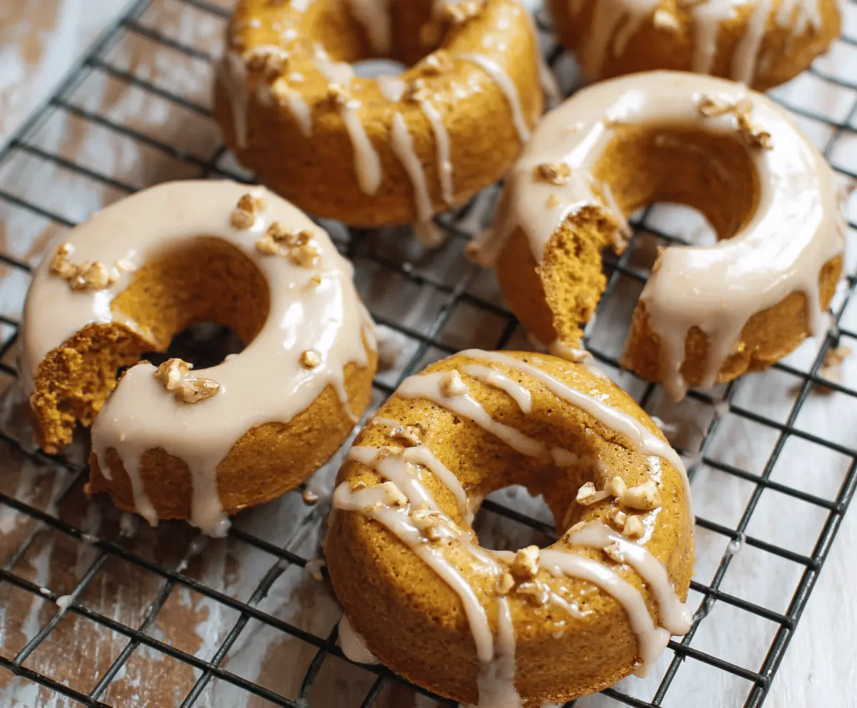 Enjoy your deliciously moist baked pumpkin donuts topped with a sweet and smooth maple glaze! They’re sure to be a hit!