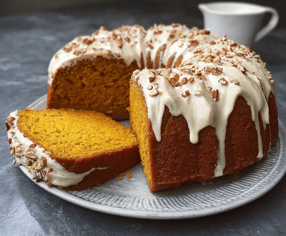 This cake’s tender crumb, warm pumpkin spices, and creamy frosting create a delightful dessert that’s perfect for fall or any special occasion!