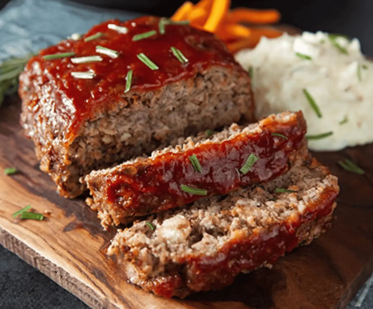 Once cooked, take the meatloaf out of the oven and let it rest for about 10 minutes. This resting period keeps it juicy. After resting, slice the meatloaf into portions.